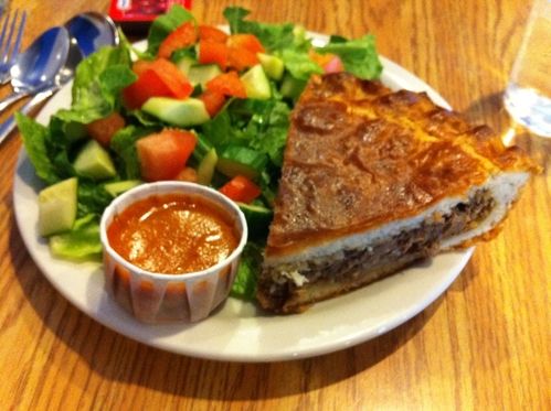 We had ployes and creton at the Acadian Village. At the Acadian Co-op restaurant in Cheticamp, NS, we had meat pie.