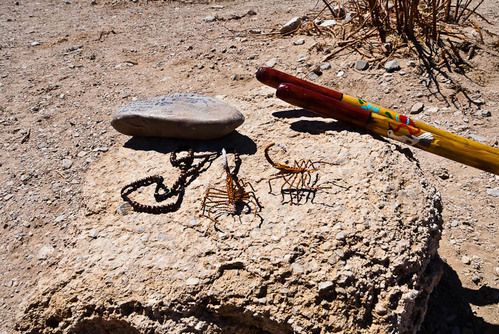 As one means to produce revenue for the residents of Boquillas, they place hand-made trinkets along the trails for sale. There are warning signs that it is not legal to purchase these items. Here is a grouping of some of these items, plus a photo of the sotol cactus, from which the walking sticks are produced.