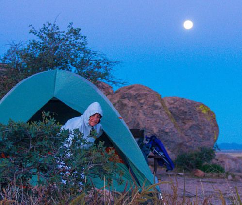 On October 18, 2013 we camped out under the full moon at City of Rocks State Park in south west New Mexico. Our tent site was in the Pegasus section of the park. The volcanic rocks were formed 35 million years ago and then shaped by wind and rain to for an area that resembles a city. The areas between the rocks make for very private camp sites.