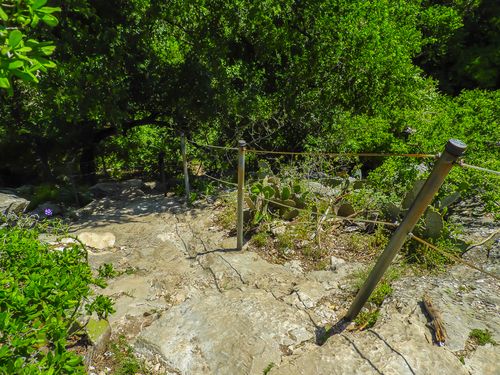 Here we are at the the beginning of the 3 mile round trip hike to Gorman Falls at 10:38am on April 18th. The difficulty level is listed as moderate. The elevation change was 344 feet. It was quite rocky in places. It was steep and slippery near the falls. They did have cables to assist us in our descent and our climb back up after viewing the falls. Walking sticks and good hiking boots are recommended.
