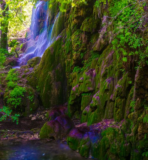 In the middle of Texas, after a hike over a rocky trail through fields of wildflowers and cactus, one does not expect to see an area reminiscent of a Costa Rica rainforest. Gorman Falls provides the unexpected. The water, though not voluminous, is more like a misty shower than a gushing falls. The lichen covered rock face has been described as a series of scary faces.