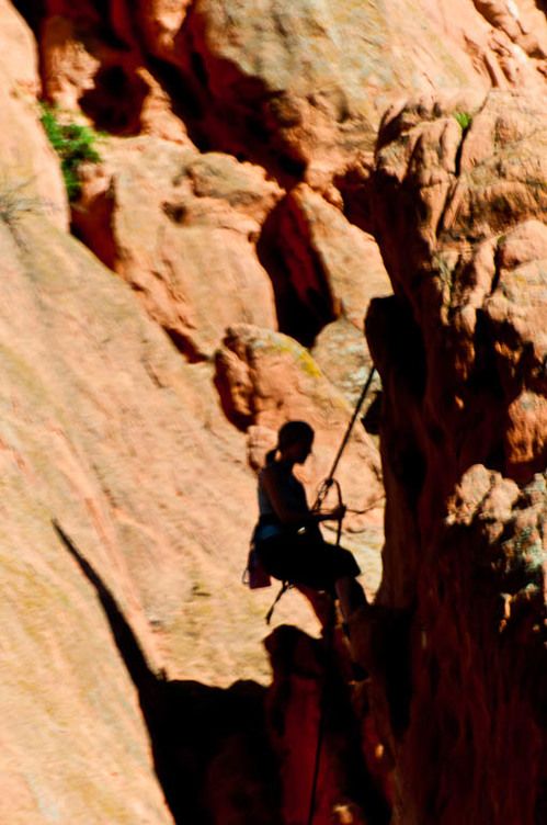 We watched several rock climbers during our visit. At right a young lady repels down from her climb.