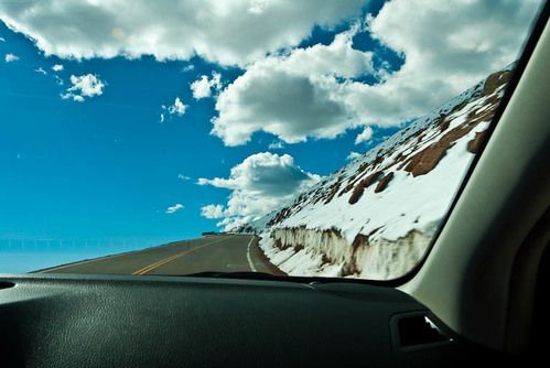 As we got above the tree line, there was snow on the side of the road. Also, the road got steeper with more switchbacks as seen below.