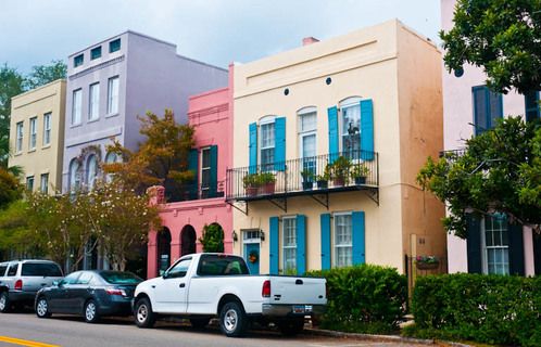 An area on East Bay Street of brightly colored homes is called "Rainbow Row".