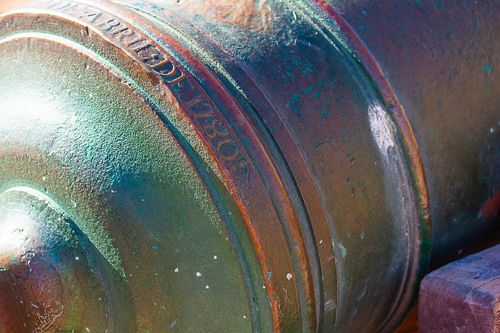 The bronze cannons were made in Spain of copper from Mexico and Peru. They were cast in the late 1700's. There are 19 bronze cannons of three different nationalities, Spanish, Portuguese and Dutch.