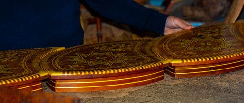 Essaouira is known for it's Thuya woodworkers. The craftsmanship is passed down through the generations. The Thuya tree is native to the Essaouira area of Morocco. The wood is prized for it's beauty and aroma. It polishes to a nice shine. Here are some images from our tour of a Thuya workshop, which was located beneath the ramparts.