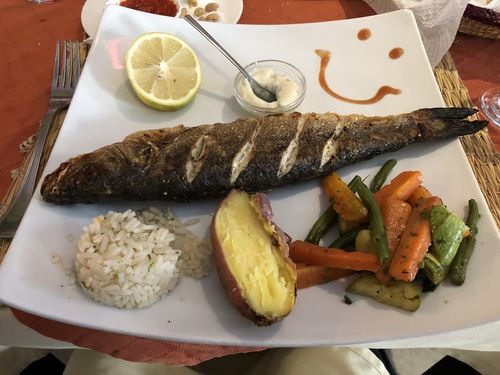 The service was on the slow side at Casa Mounia, but the Sea Bass meal was excellent.
