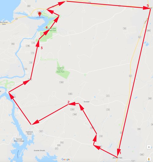 Our 2018 quest for Texas wildflower photos centered on Inks Lake State Park in the hill country. With our friend, Ann, we started at the visitor center in Marble Falls Texas (1). The gentleman at the visitor center suggested a route for wildflower viewing We approximately followed it. Photographs were taken at stops 2, 3 and 4. Our last stop was in Burnet, Texas for ice cream at Happy Scoops.