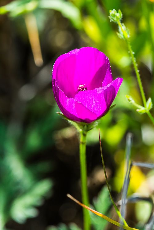 One of my favorite wildflowers is the wine cup. Below left, I am attempting to get a close up of this delicate flower. On the right is the resultant image.