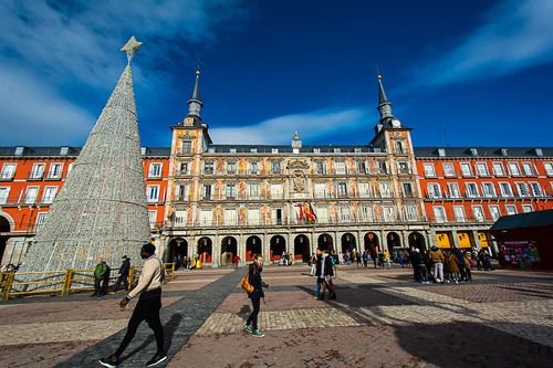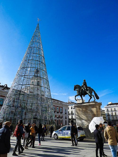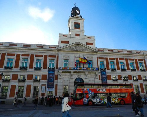 At left is the Casa de Correos building. For over a century the people of Spain usher in each new year by eating 12 lucky grapes to the 12 chimes struck by the clock atop this building.