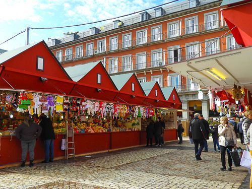 As we visited in December, many of the squares in the city were decorated for Christmas. In this plaza, they had a Christmas market set up in the square.