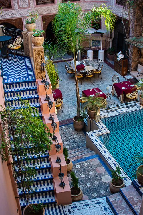 This was the third Ryad that we had stayed in in Morocco. For the third time we were informed that our room had been upgraded. What we finally realized is upgraded doesn't necessarily mean a better room, it means the room is up, as up a lot of steps. To get to our room called Tataah, we climbed lots of steps. Some of these steps are seen below.
