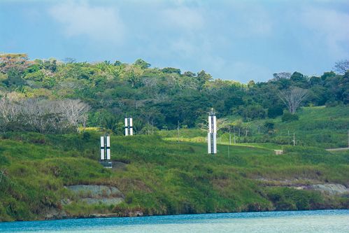 Along the the canal were these signboards. They are used for pilots to position their ship in the canal. If they line up with the crosses, they are in the center of the canal. When they line up with the vertical lines they are on the right side of the canal, which is important if they are facing traffic coming from the opposite direction.