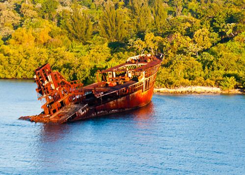 Our first site as we docked at Mahogany Bay was this old shipwreck. Below are views of the development and the shopping area. The last photo shows a couple of local beers.