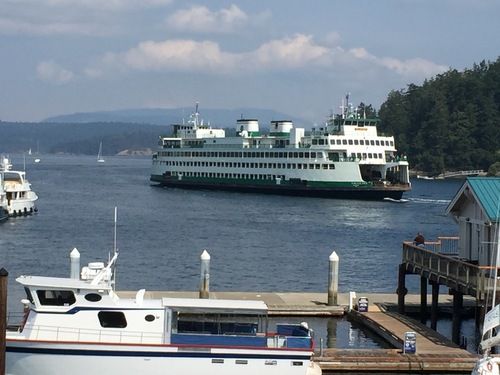 The self directed island tour finished with a few hours to spare before the return ferry to Anacortes was ready for boarding. So, while we waited for our ship to come in, we had a nice lunch at Downriggers. Our table was on their balcony over looking the harbor.